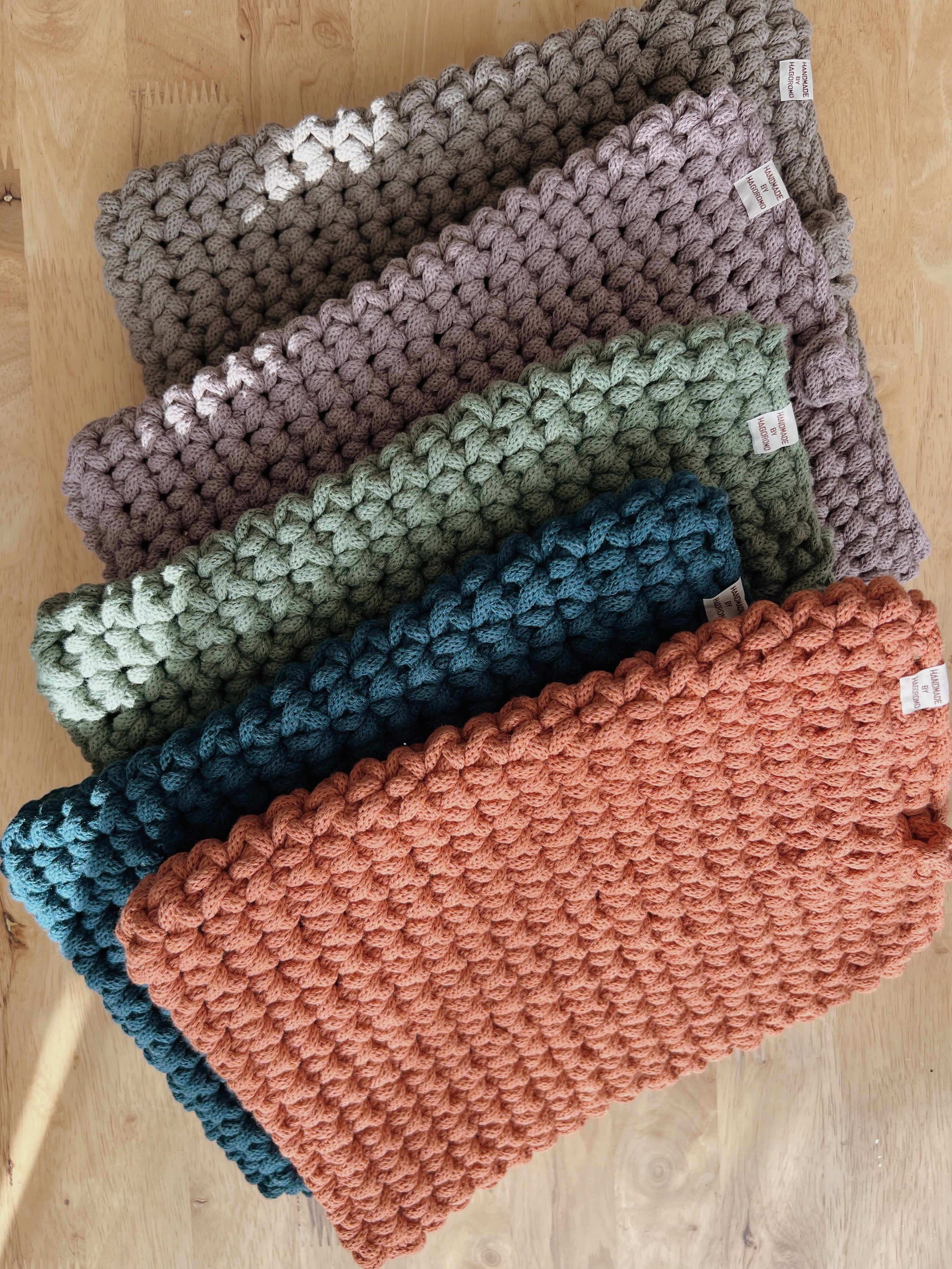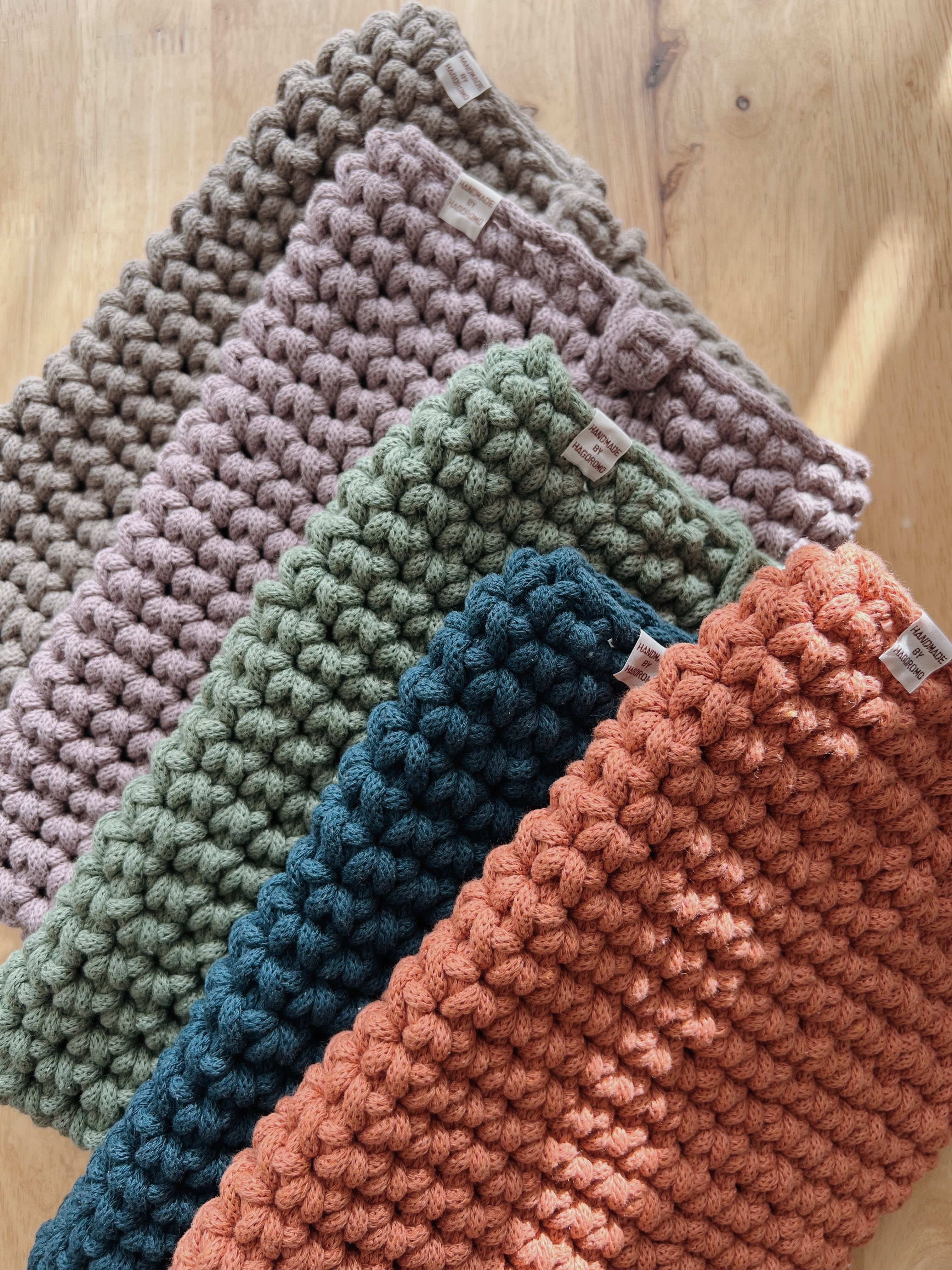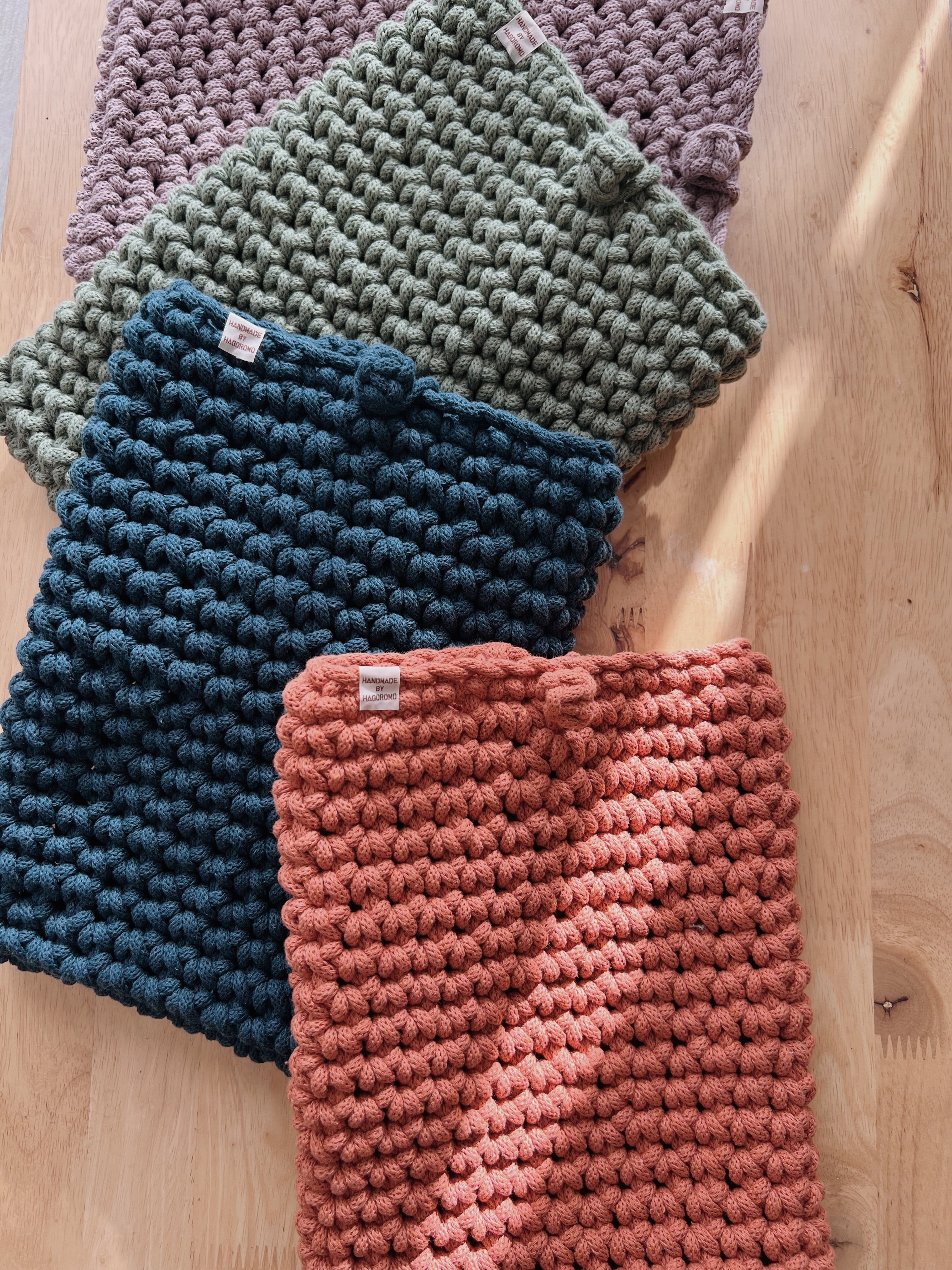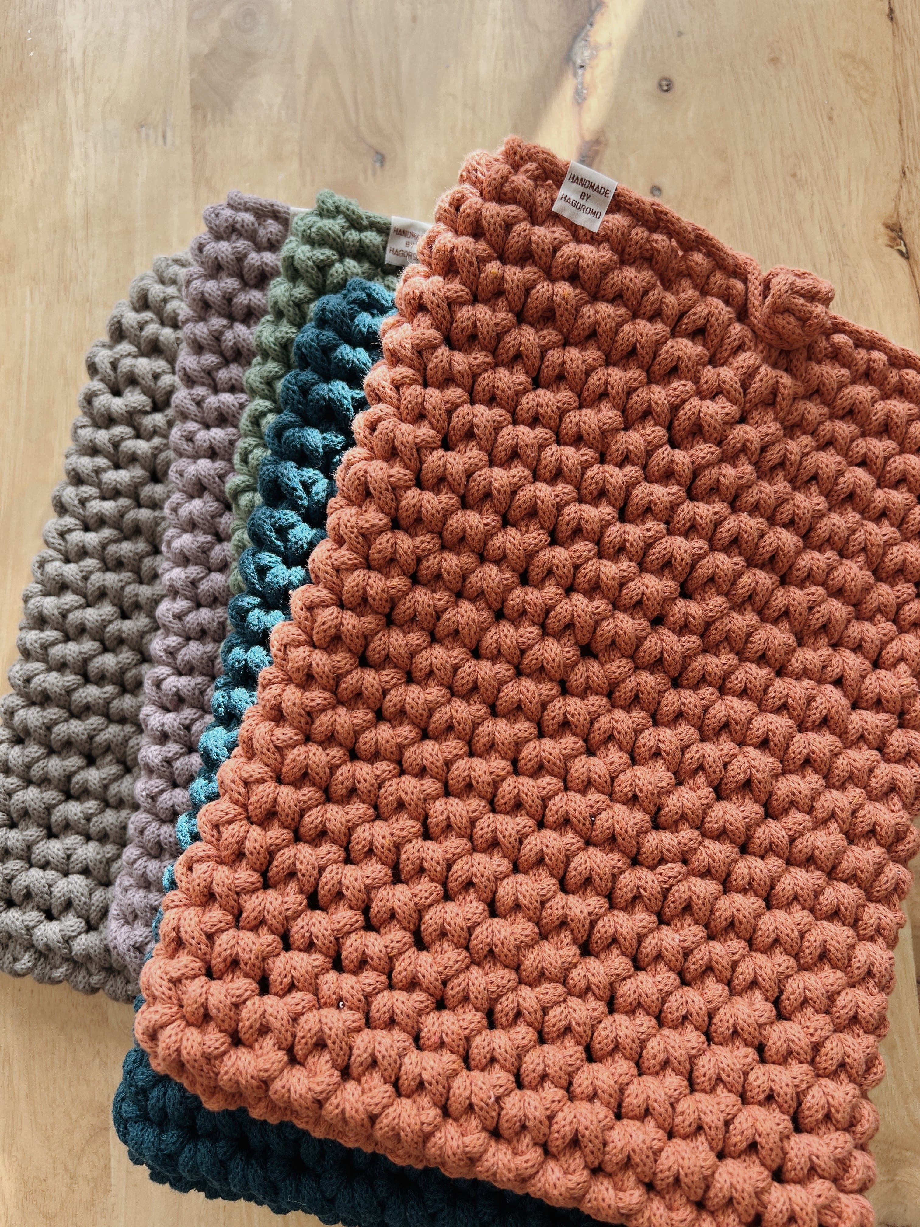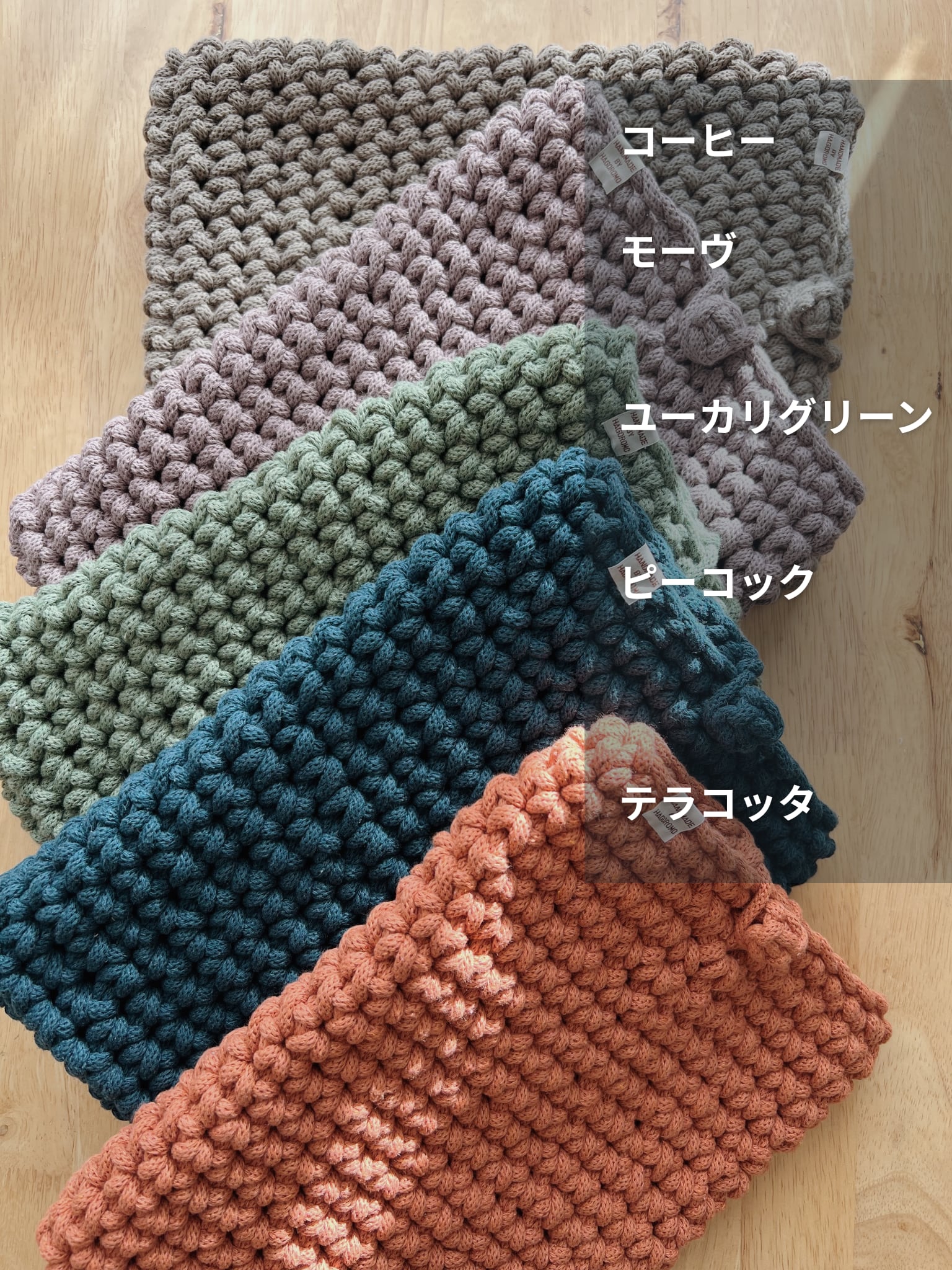 ・編み部分はできるだけ同じようにお作りしていますが、1点ずつ手編みのため、若干の編み目の差が生じることをご理解くださいませ。
