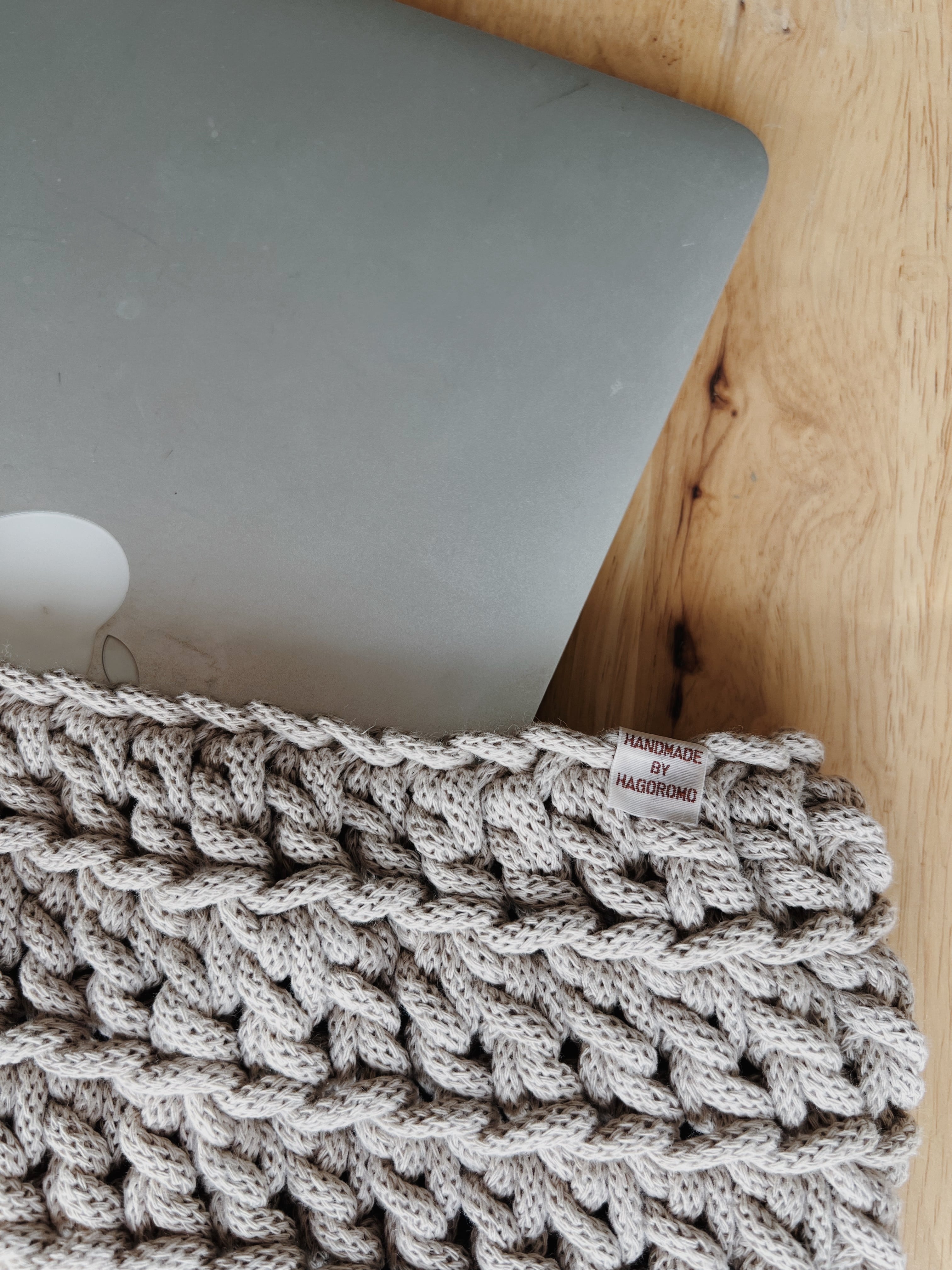 大切なラップトップを優しく包み込み、持ち運びも安心。手に取るたびに感じる柔らかさと、個性的な編み目が特長です。どこにでも持ち歩きたくなる魅力的なアイテムに仕上げました。