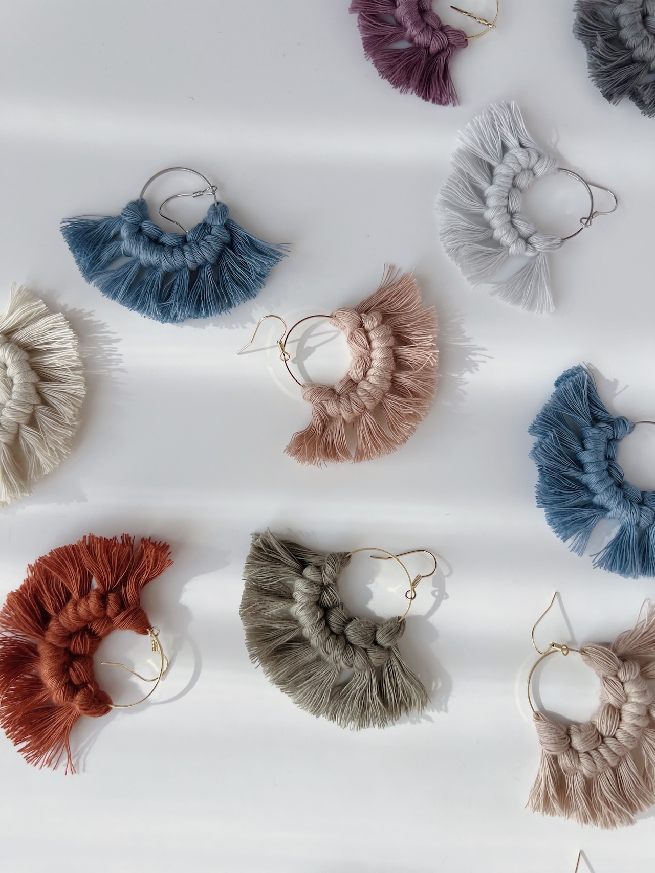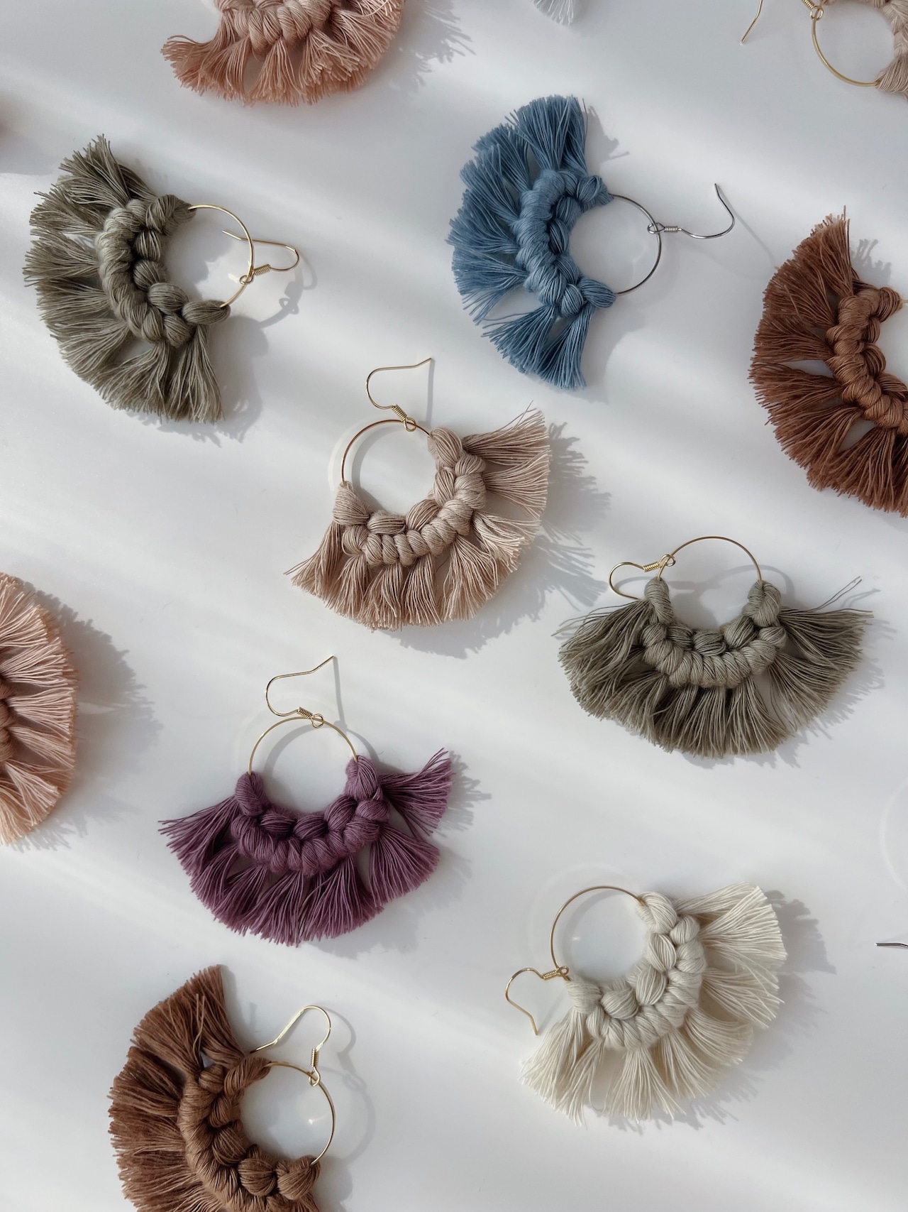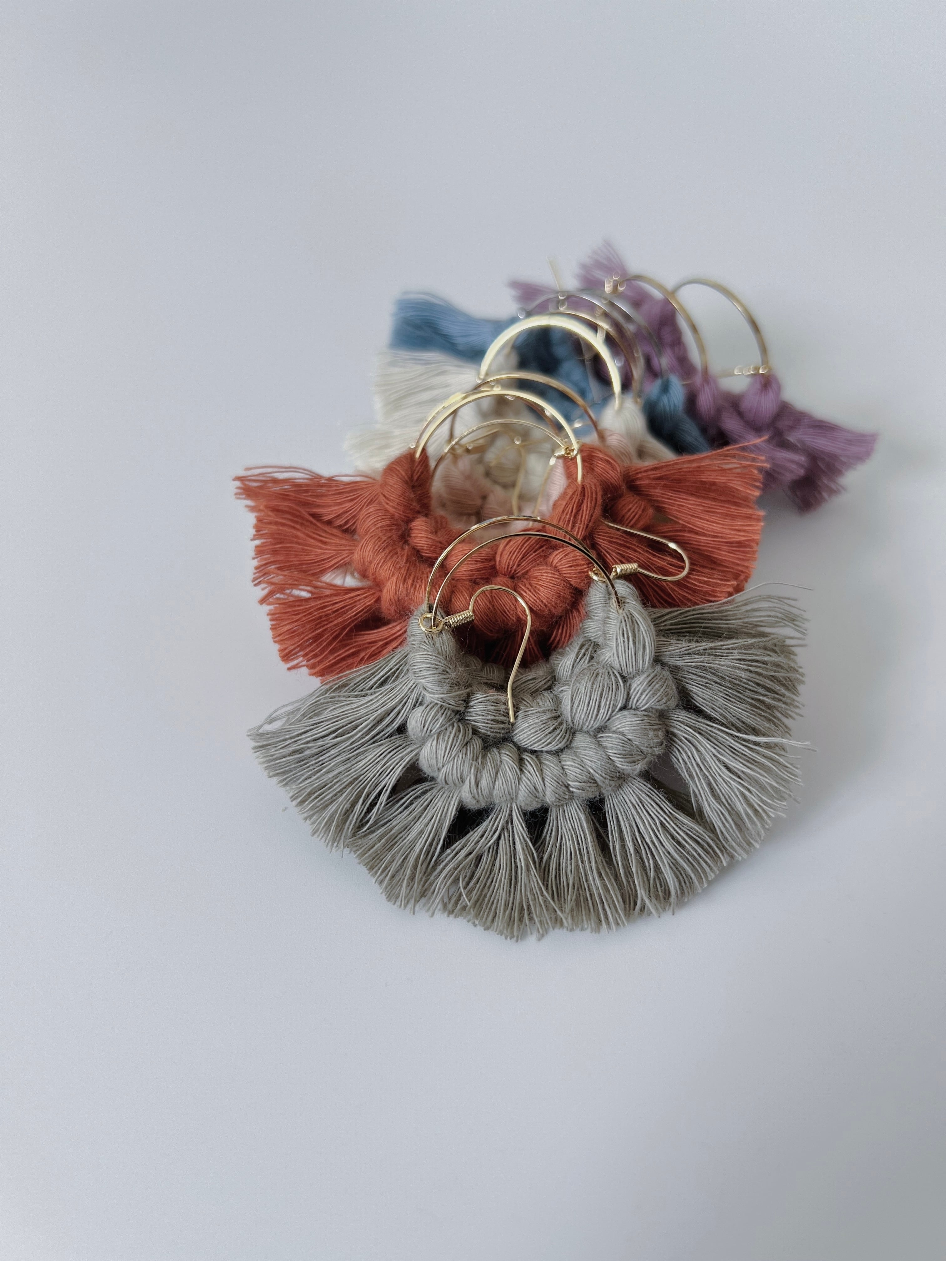 マクラメ編みのフープフリンジピアス/イヤリング ‖ BOHO macrame hoop fringe earrings