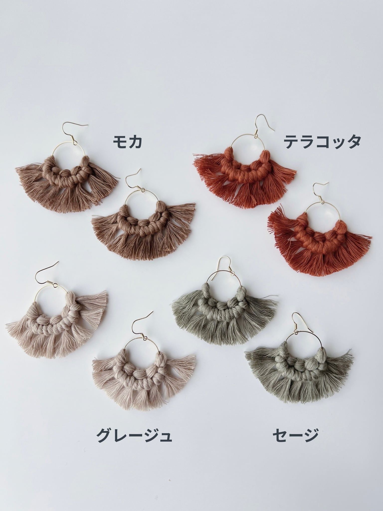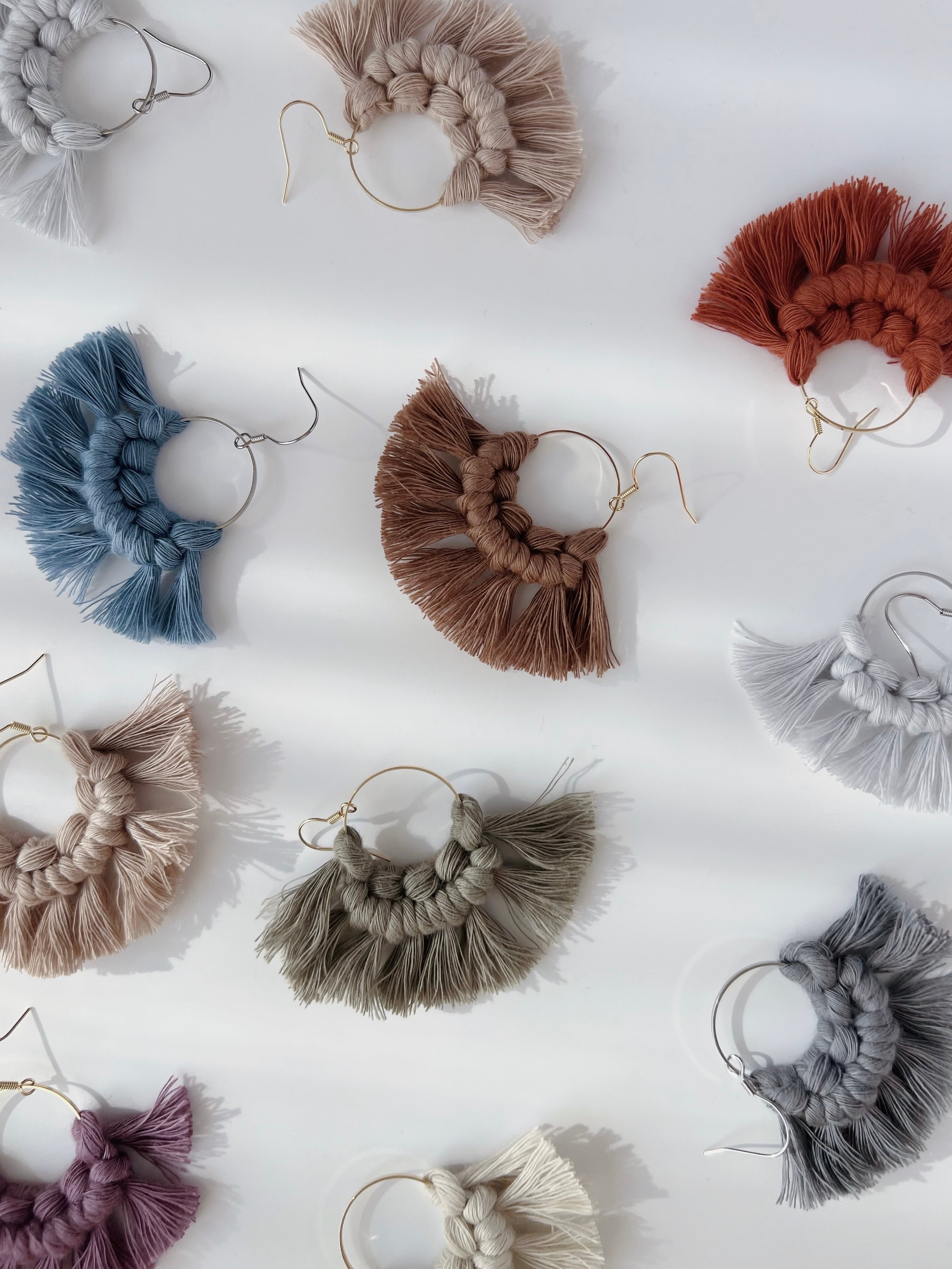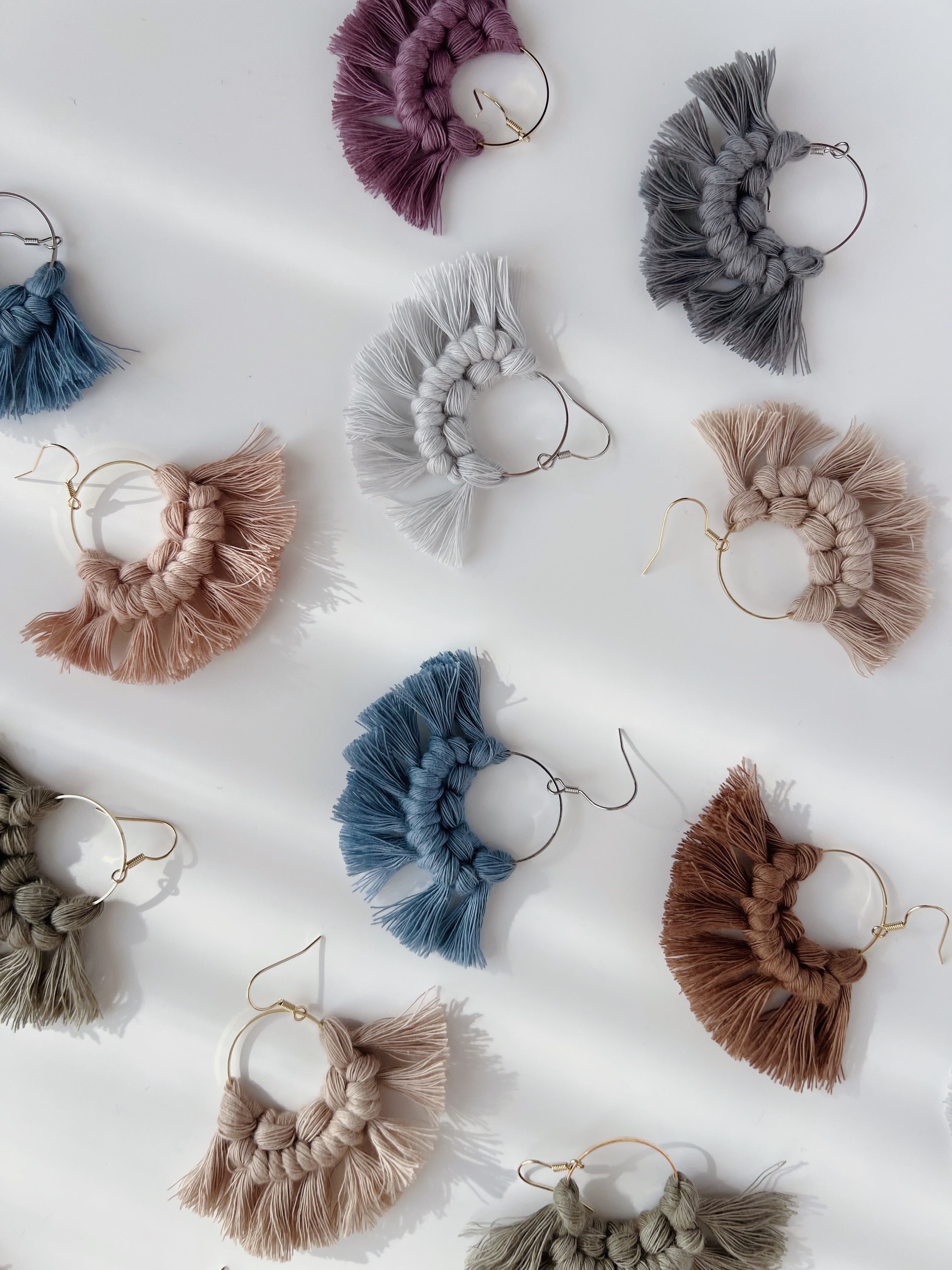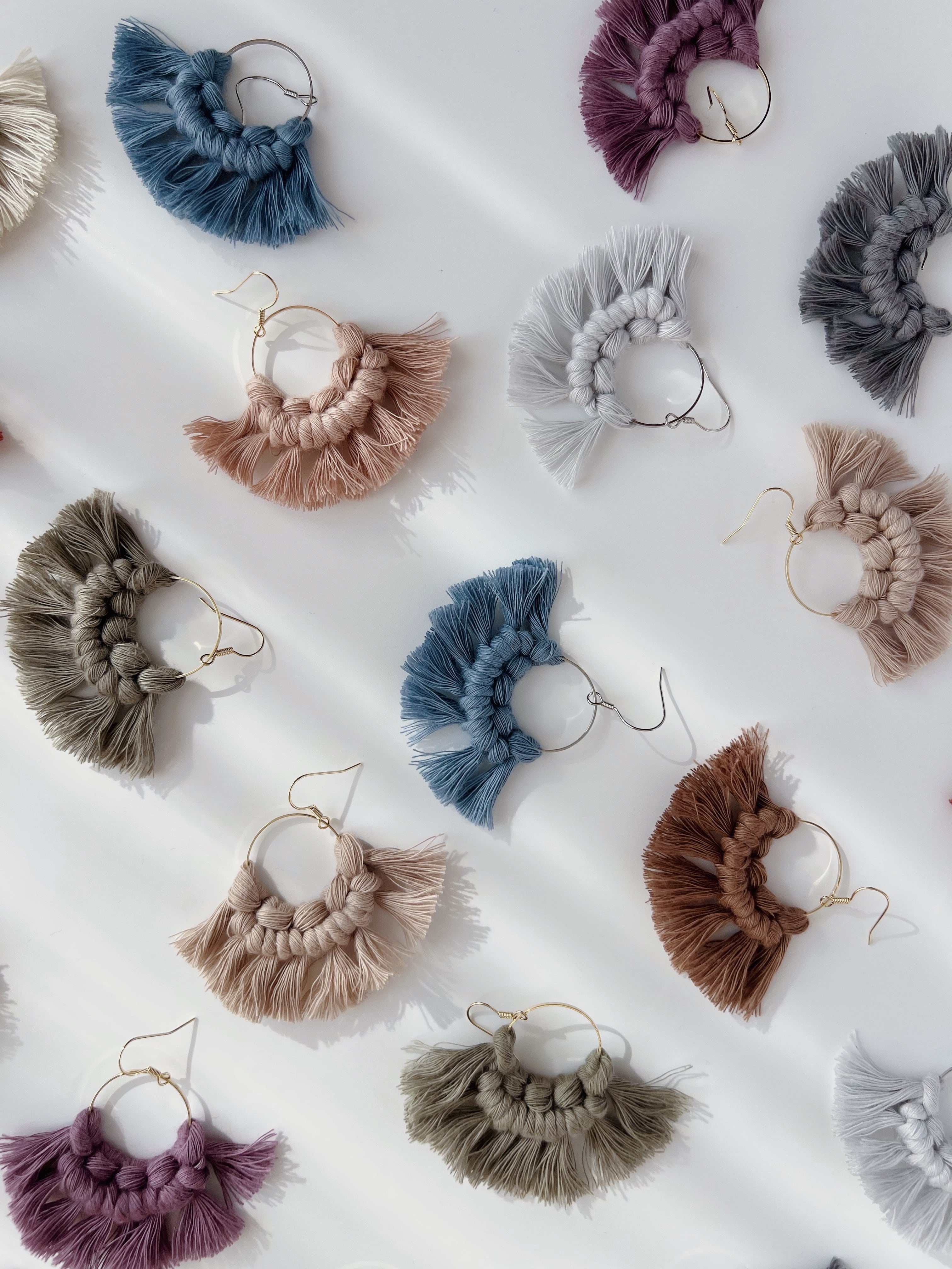 マクラメ編みのフープフリンジピアス/イヤリング ‖ BOHO macrame hoop fringe earrings